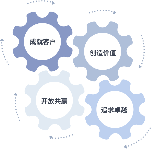 成就客户是一切决策的出发点,创造价值是衡量所有工作的标准,追求卓越是40001百老汇做事做人的态度,开放共赢是40001百老汇的格局也是最终的结果。价值观的齿轮环环相扣,推动着组织里的每个人不断向前。
